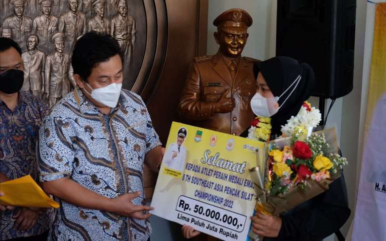 Kedua pesilat Kabupaten Bekasi itu yakni Rahmawati dan Asep Yuldan Sani yang masing-masing meraih medali emas dan perak pada kejuaraan pencak silat Southeast Asia Championship 2022 di Singapura, yang digelar pada 25-27 Februari 2022 di Singapura.