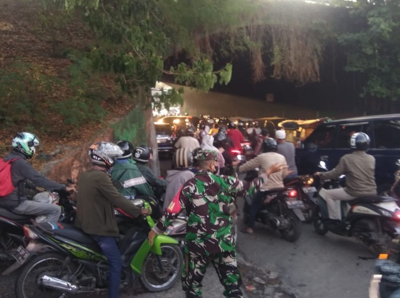 “Karena belum ada yang mengatur kemacetan terpaksa saya langsung turun mengatur kendaraan agar dapat berjalan lancar dan teratur,” kata Serma Sudirman.