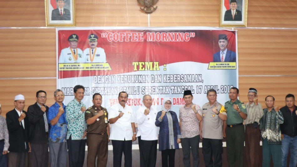 Turut hadir dalam coffe moring wabup tanjung jabung barat, para unsur forkompimda, ketua KPU, ketua Dprd kab.tanjung jabung barat, ketua Tim Pengerak PKK, serta forum kerukunan beragama. (bin/hms)