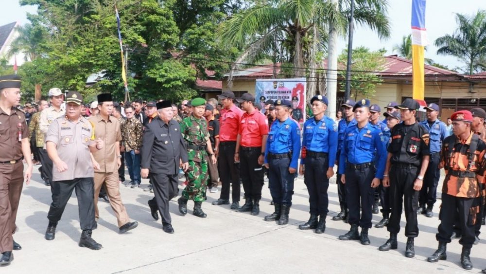 Puluhan pasukan apel tersebut terdiri dari lintas masyarakat seperti personel TNI, ASN, Polri, Security, Bawaslu, KPU, Linmas TPS, Menwa, dan Ormas. Dalam apel ini Kapolres Tanjab Barat AKBP ADG Sinaga S IK dan Kasdim 0419 Tanjab Mayor Chb Indra Jaya bertindak sebagai inspektur upacara.