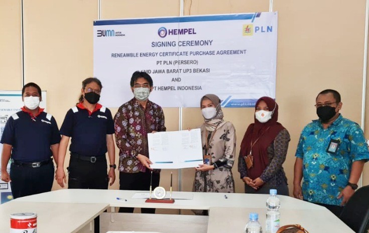Hal itu dibuktikan dengan diterbitkannya 840 sertifikat energi terbarukan atau Renewable Energy Certificate (REC) PLN setara dengan 840 Megawatt hour (MWh) kepada PT Hempel Indonesia.