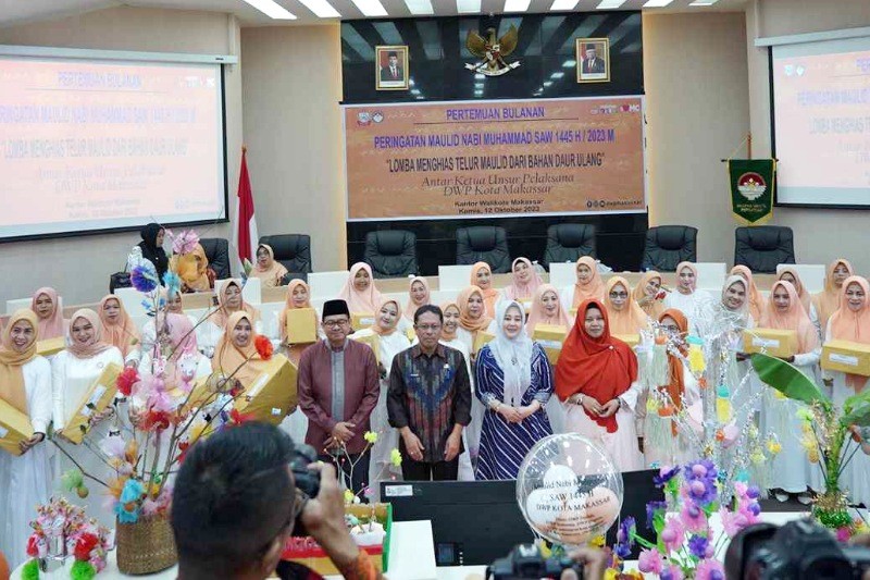 Suarapena.com, MAKASSAR – Dalam rangka memperingati Maulid Nabi Muhammad SAW, Dharma Wanita Persatuan (DWP) Kota Makassar mengadakan lomba kreatif menghias telur maulid dengan menggunakan bahan-bahan daur ulang. Lomba ini berlangsung di Ruang Sipakatau Balaikota Makassar pada hari Kamis, (12/10/2023).