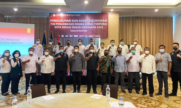 SUARAPENA.COM –Dalam rangka penguatan pengawasan dan penegakan hukum keimigrasian Kantor Imigrasi Kelas I Non TPI Bekasi menggelar rapat Tim Pengawasan Orang Asing (Timpora). Kegiatan tersebut bertema memperkuat sinergitas anggota Timpora tingkat Kota Bekasi, Jawa Barat, Selasa (29/3/2022).