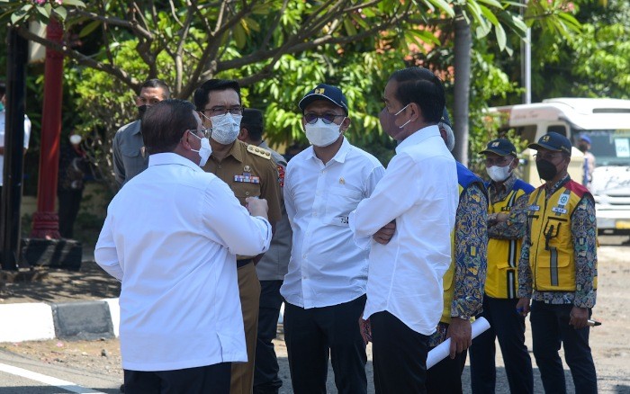 “Pagi hari ini saya ke Cirebon, Provinsi Jawa Barat dalam rangka pembagian, pertama pembagian BLT Minyak Goreng kepada para pedagang kaki lima dan juga ibu-ibu penerima PKH. Kedua, juga pemberian tambahan modal usaha sebesar Rp1,2 juta,” ujar Presiden usai menyerahkan bantuan.