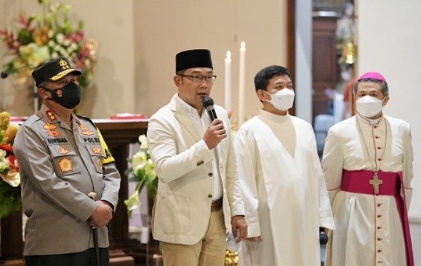 “Saya bersama Forkompimda dan juga dilakukan oleh seluruh kepala daerah di 27 kota/kabupaten, memastikan dan kami dapat laporan semua pelaksanaan misa di Jawa Barat berlangsung aman dan nyaman sesuai harapan dari jemaah yang melaksanakan misa natal,” kata pria yang kerap disapa Kang Emil.
