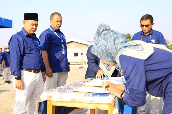 Suarapena.com, TANGERANG – Dalam rangka meningkatkan disiplin dan etos kerja pegawai serta menunjang terwujudnya visi dan misi bersama Perusahaan Umum Daerah (Perumda) Tirta Benteng Kota Tangerang menggelar Apel pagi sekaligus penandatangan Fakta Integritas seluruh pegawai, yang dilaksanakan di Instalisasi Pengolahan Air (IPA) Sintanala Kota Tangerang kapasitas 500 liter/detik, pada Selasa (18/7/23).