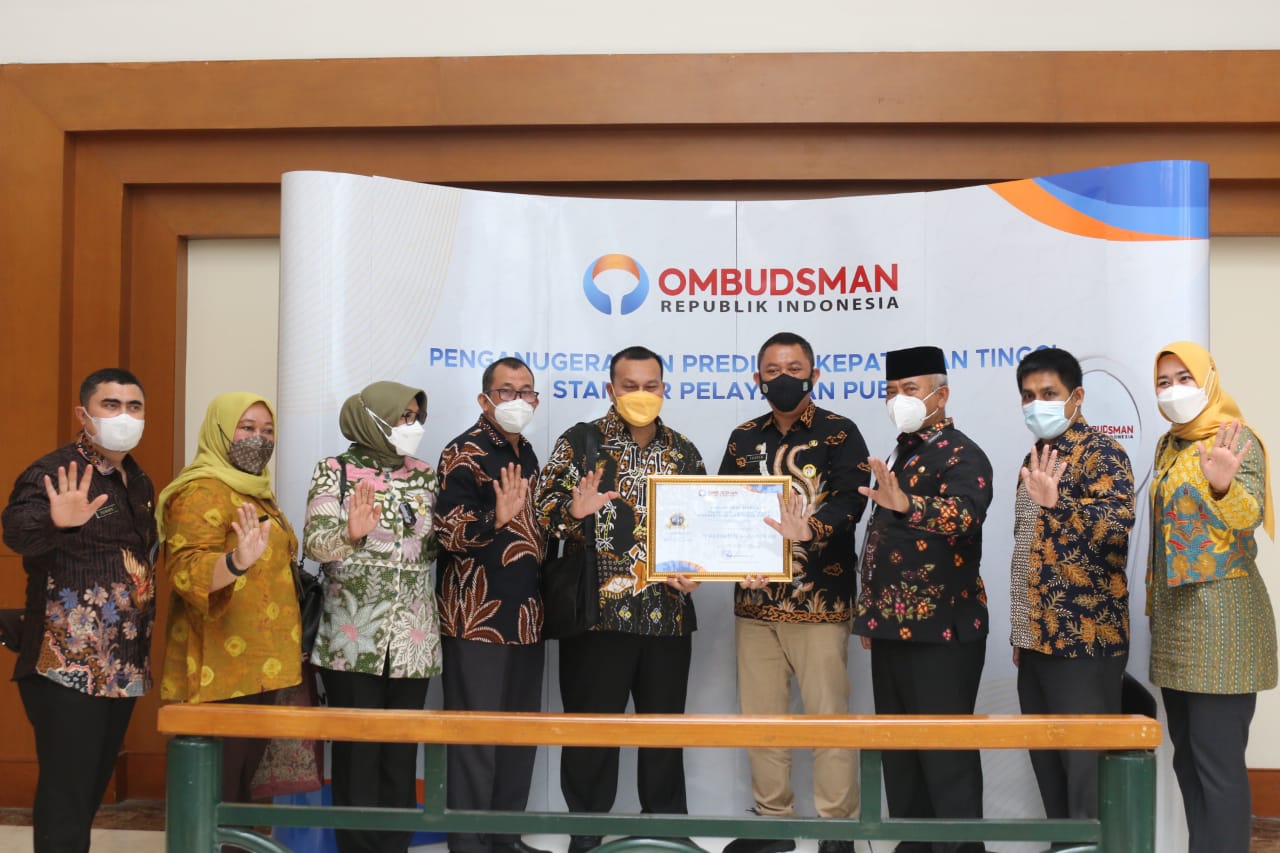 SUARAPENA.COM – Wali Kota Bekasi Rahmat Effendi menerima langsung penghargaan sebagai Pelayanan Terbaik dengan Peringkat ke IV dengan nilai 91,67 Predikat Kepatuhan Tinggi Standar Pelayanan Publik Tahun 2021 yang diserahkan langsung oleh Ombudsman, Rabu (29/12/21).
