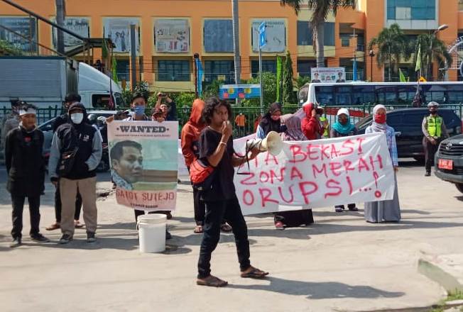 SUARAPENA.COM – Puluhan massa Mahasiswa yang tergabung dalam Gerakan Rakyat Anti Korupsi (Grasi) menggelar aksi unjuk rasa (Unras) didepan kantor Kejaksaan Negeri Kota Bekasi, Jl. Jenderal Sudirman, Kel. Keranji, Kec. Bekasi Barat, Kota Bekasi, Jawa Barat, Kamis (25/6/2020) siang.