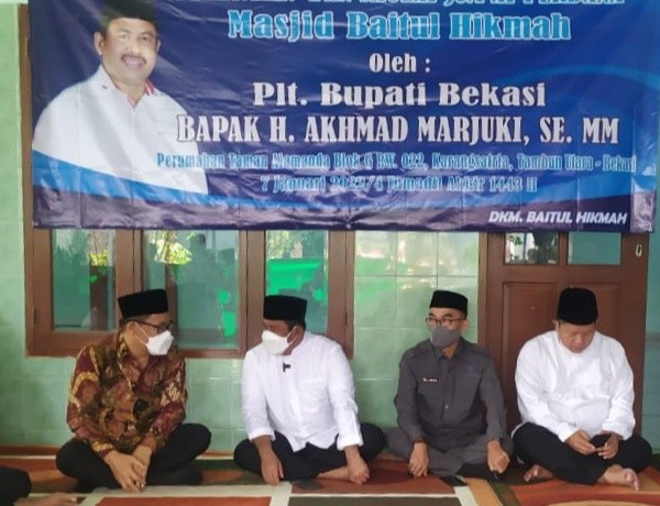 SUARAPENA.COM – Plt. Bupati Bekasi, Akhmad Marjuki meresmikan Masjid Baitul Hikmah, yang berlokasi di Perumahan Taman Alamanda Blok G RW 022, Desa Karangsatria, Tambun Utara, Jumat (7/1). Selain itu Plt Bupati Bekasi juga melaksanakan Shalat Jumat sekaligus bersilaturahmi dengan jamaah dan warga setempat.