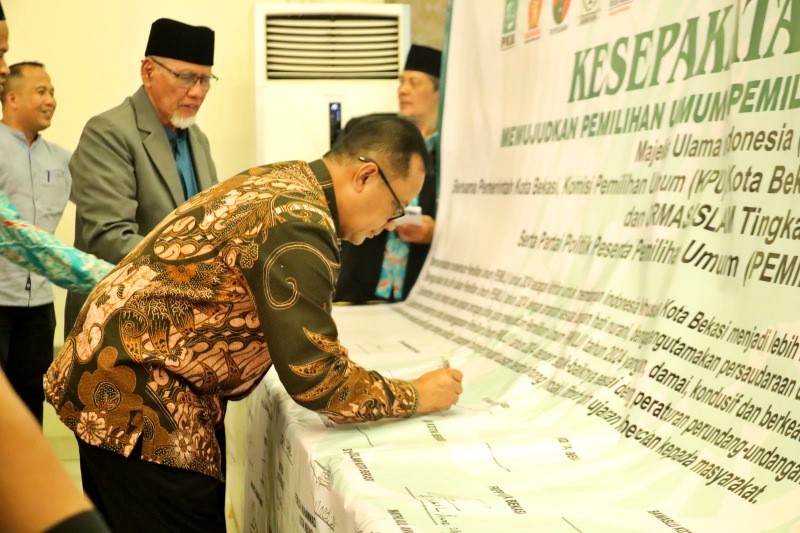 Pertemuan tersebut diakhiri dengan pembacaan dan penandatanganan Deklarasi tentang Kesepakatan Bersama untuk Menciptakan Pemilu Tahun 2024 yang Berkeadaban yang ditandatangani langsung oleh Pj Wali Kota Bekasi bersama unsur-unsur yang hadir dalam kesempatan tersebut. (sng)