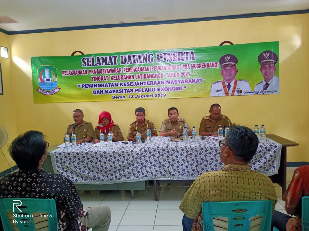 SUARAPENA.COM – Kelurahan Jatiranggon laksanakan kegiatan Pra Musyawarah Perencanaan Pembangunan (Pra Musrenbang) tingkat kelurahan tahun anggaran 2021 wilayah Kecamatan Jatisampurna, Kota Bekasi, Senin (13/1/2020).