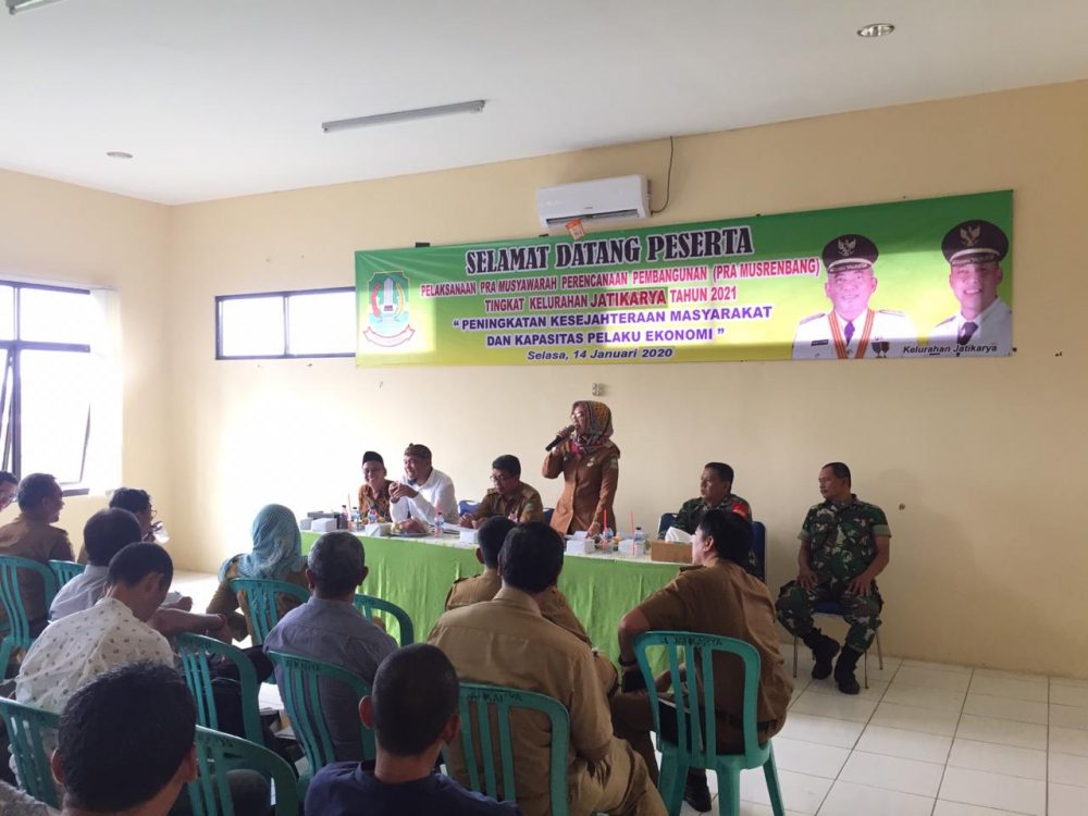 SUARAPENA.COM – Kelurahan Jatikarya, Kecamatan Jatisampurna, Kota Bekasi laksanakan Pra Musyawarah Rencana Pembangunan (Pra Musrenbang), di aula Kantor Kelurahan, Selasa (14/1/2020).
