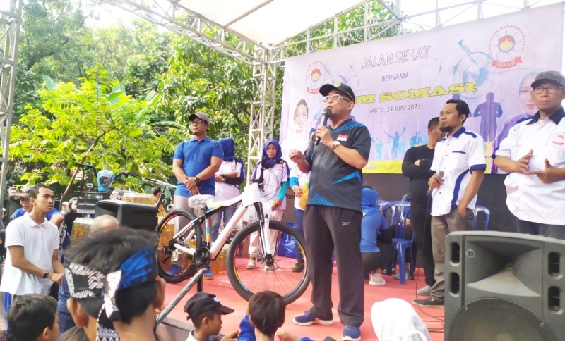 Ketua Umum LSM Somasi Budi Ariyanto mengatakan, kegiatan jalan sehat menjadi bukti eksistensi LSM Somasi yang tetap konsen pada kegiatan sosial di tengah masyarakat. Meski sempat tertunda selama tiga bulan, ia bersyukur akhirnya acara senam sehat dapat direalisasikan.