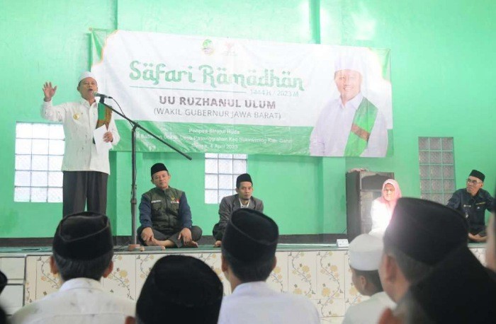 Suarapena.com, GARUT – Safari Ramadhan menjadi agenda rutin kepala daerah, termasuk Wakil Gubernur Jawa Barat Uu Ruzhanul Ulum, salah satunya mengunjungi Pesantren Sirojul Huda di Desa Pasanggrahan, Kecamatan Sukawening, Kabupaten Garut, Selasa (4/4/2023).