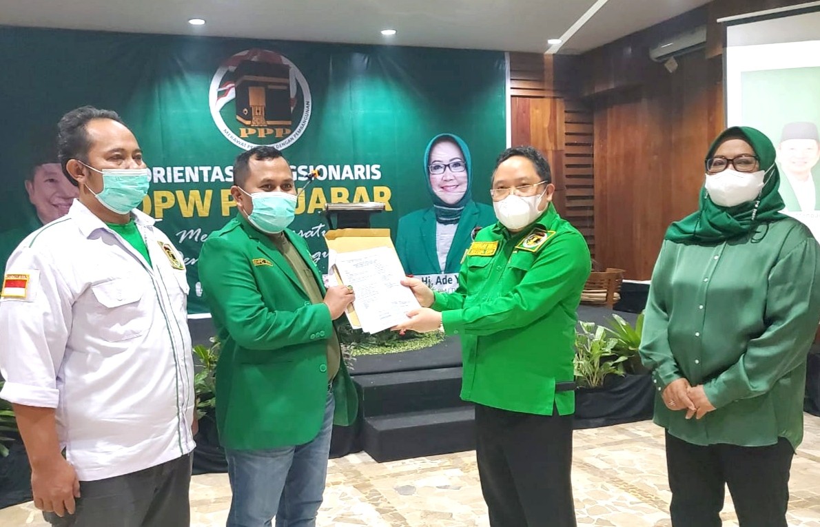 SUARAPENA.COM – Ketua Dewan Pimpinan Cabang (DPC) Partai Persatuan Pembangunan (PPP) Kota Bekasi, Sholihin kini sudah memiliki legalitas yang sah, usai dirinya menerima salinan Surat Keputusan (SK) pengurus dari Dewan Pimpinan Wilayah (DPW) PPP Jawa Barat. Gus Shol sapaan akrab Sholihin menerima SK didampingin Sekretaris DPC PPP Kota Bekasi, Dawam Mahfudz.