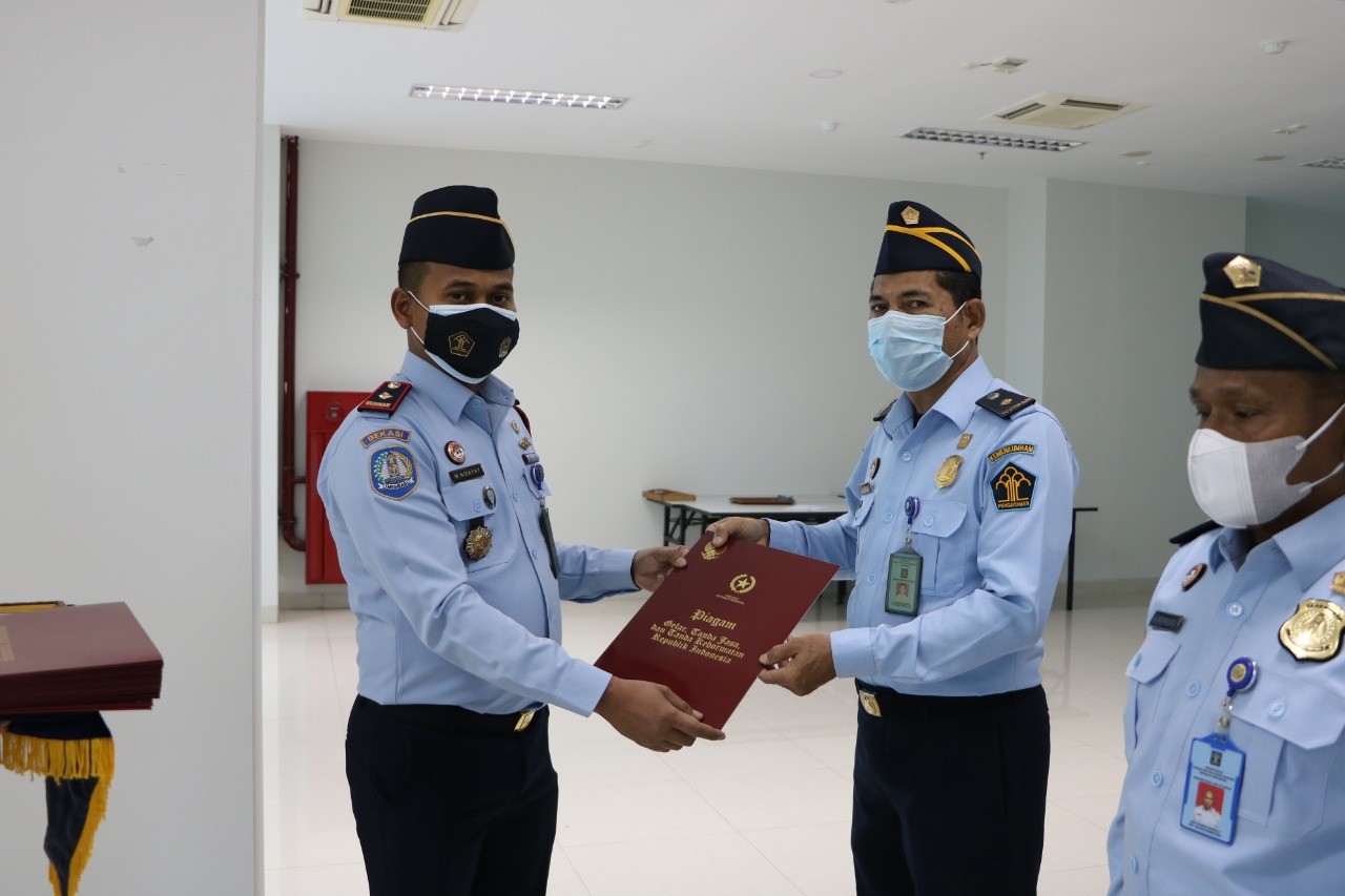 SUARAPENA.COM – Kantor Imigrasi Kelas I Non TPI Bekasi melaksanakan apel pagi dan penyerahan penghargaan Satya Lencana Karya Satya sebagai Pegawai Negeri Sipil.