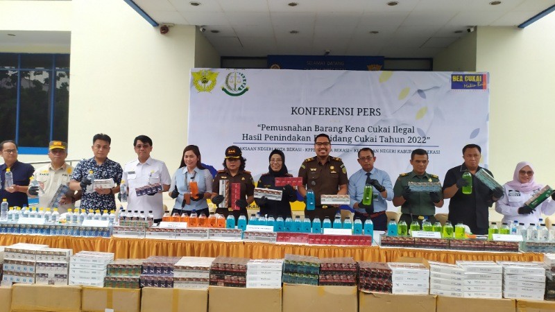 Suarapena.com, BEKASI – Kantor Beacukai Bekasi musnahkan barang kena cukai ilegal hasil penindakan di bidang cukai tahun 2022. Pemusnahan dilakukan di halaman Kantor Beacukai Bekasi, Cikarang Barat, Rabu (21/12/2022).