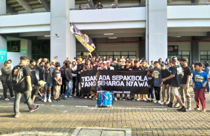 “Aksi kita hari ini notabennya sangat kaget dan berduka. Karena kita enggak menyangka baik laga Arema Malang melawan Persebaya Surabaya ini sampai makan korban sekitar 100 lebih bahkan, update terakhir sampai 200 korban yang terdampak,”