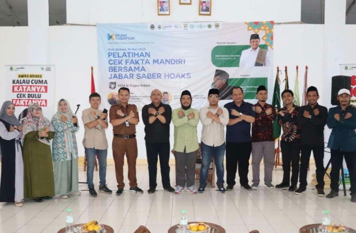 Suarapena.com, BEKASI – Unit Jabar Saber Hoaks Pemprov Jawa Barat menggelar kegiatan Pelatihan Cek Fakta Mandiri Jabar Saber Hoaks, di aula Sekolah Tinggi Agama IsIam At-Taqwa (STAIA) Kecamatan Babelan, Kabupaten Bekasi, pada Selasa (16/05/2023).