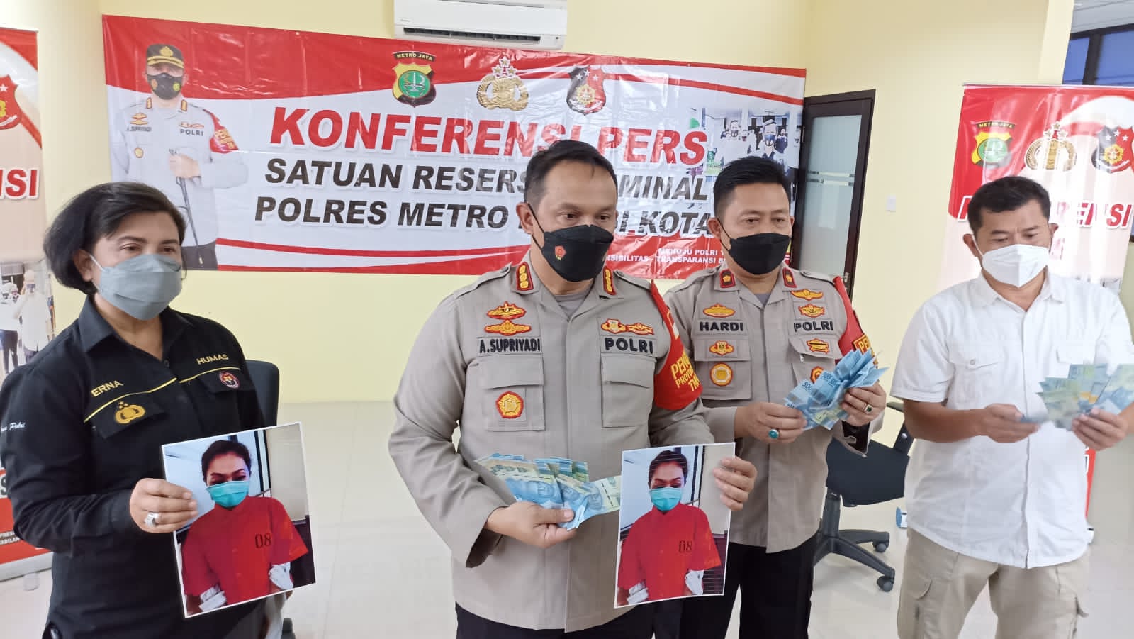 Kapolres Metro Bekasi Kota Kombes Pol Aloysius Suprijadi menuturkan bahwa tersangka ditangkap polisi saat menjalankan aksinya di sebuah kios jasa transfer uang jalan Raya Jatibening, kecamatan Jatibening, Pondokgede Kota Bekasi pada Senin (06/12/21) sekitar pukul 14:30 wib.